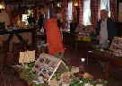 Was aber ist Glaube und was ist Wirklichkeit? Trotz der angeblich leeren Wälder konnten in der Ausstellung genau 119 frisch gesammelter Arten dem staunenden Publikum präsentiert werden. Besonders gefiel die von der Pilzfreundin Evelyn Mertens (Bild oben im Vordergrund) liebevoll gestaltete Dekoration und Präsentation der Schaustücke. Begeisternden Anklang fanden erwartungsgemäß die angekündigten Stegreifvorträge des leitenden Pilzsachverständigen. So konnte jeder Besucher seine Wunschthemen äußern und bei schönstem Wetter im herrlichen Garten der Waldgaststätte den spannenden Vorträgen lauschen. Von Tschernobyl über Schwermetallbelastung bis Fuchsbandwurm, insgesamt wurden 16 verschiedene Themen zumeist mit dem Oberbegriff „Speisepilze und ihre giftigen Doppelgänger“ gewünscht und für jeden leicht verständlich abgehandelt. Weil mit dieser besonderen Leistung punktgenau und direkt auf die Bedürfnisse der Besucher eingegangen wurde, folgten viele spontan über mehrere Stunden den interessanten Erläuterungen, oder kamen einfach - wie diese Besucher im Bild links - später noch einmal wieder. Neben Meik Nickel, der auch an der VHS in Lüneburg seine Pilzkenntnisse weiter gibt, konnte Pilzfreundetreff, die veranstaltende Pilzschule mit Reinhard Ross einen weiteren Pilzsachverständigen der Region als Gast begrüssen. Als sichtbares Ergebnis dieser Kooperation wurden zur Bereicherung einer weiteren Ausstellung für die Bevölkerung am Folgetag im Naturhistorischen Museum Lüneburg viele Pilze am Ende übergeben. Angeregt durch die Besucher jetzt auch noch praktische Erfahrungen zu sammeln, wurde neben dem Treffen der Lüneburger Pilzfreunde am 18./19. November (Spätherbstpilze) schon für Januar (Winterpilze) und April (Frühjahrspilze) weitere Aktionen geplant.
